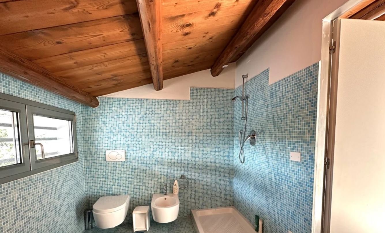 Das Anwesen liegt am Ende einer zentralen Straße der Insel und garantiert somit maximale Ruhe und Privatsphäre. Es wurde 2009 von Grund auf renoviert und 2024 modernisiert: Man wird von einem angenehmen Außenwohnzimmer empfangen, das von einer großzügigen, hohen Veranda geschützt ist, die sich in das Wohnzimmer fortsetzt, in dem ein riesiges Sofa thront, das sich gut in ein raffiniertes und originelles Ambiente einfügt, das die Modernität der großen Schiebeglasfenster entlang der gesamten Wand des Wohnbereichs bis in den Flur des Schlafbereichs mit den historischen Sichtbalken der Decke verbindet. Durch eine elegante Glaswand vom Wohnzimmer getrennt befindet sich eine moderne, maßgefertigte Küche, deren Atmosphäre (wie im gesamten Haus) durch geschickt in die Wände eingelassene Beleuchtungselemente aufgewertet wird. Das Ganze ist wiederum mit einer großen Außenterrasse verbunden, die alles bietet, was man für die besten Partys und Gäste braucht.