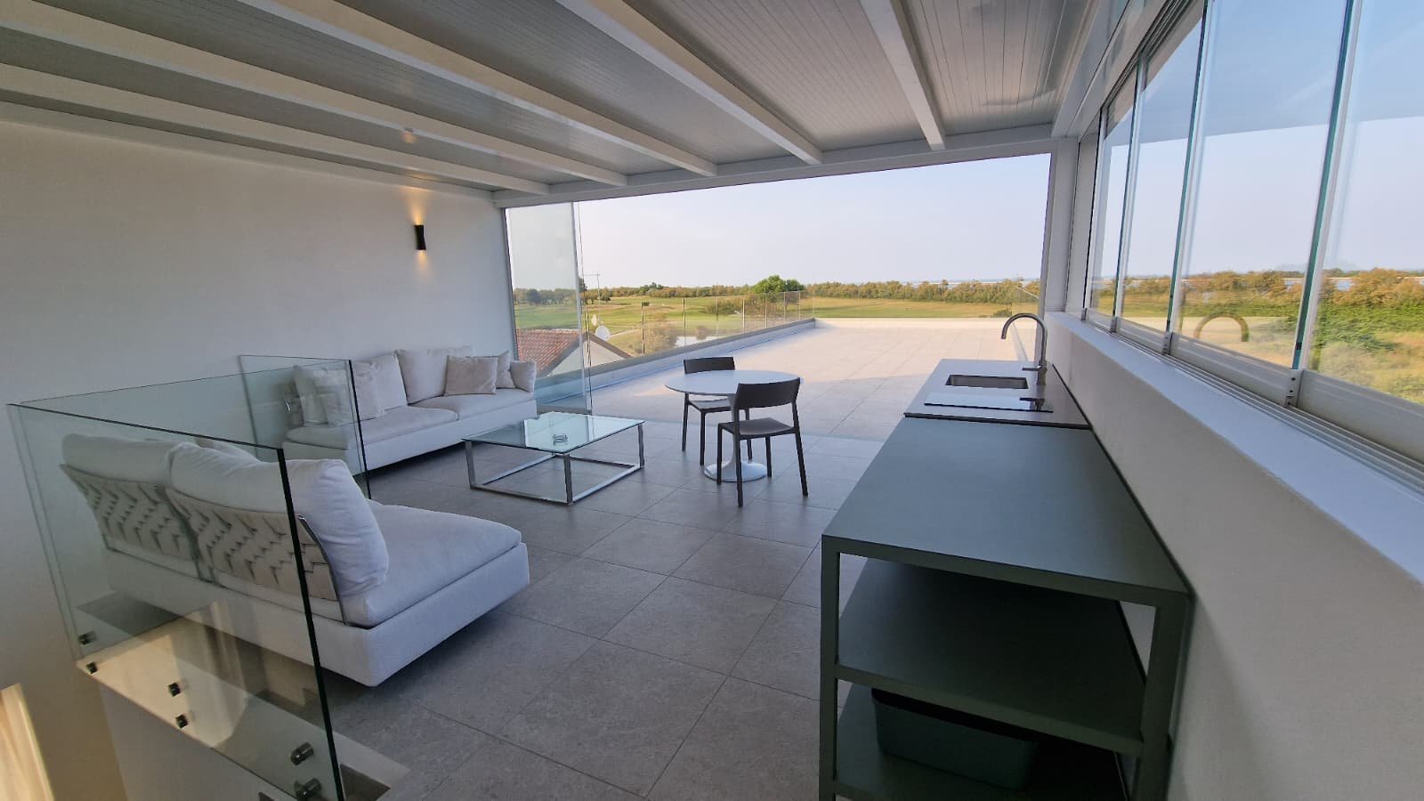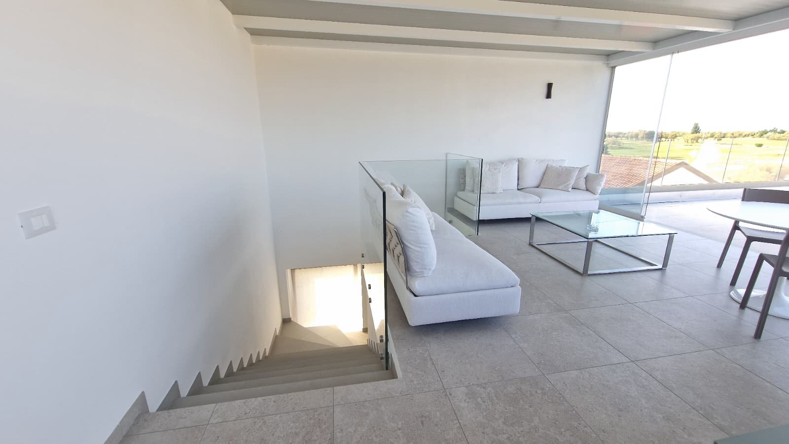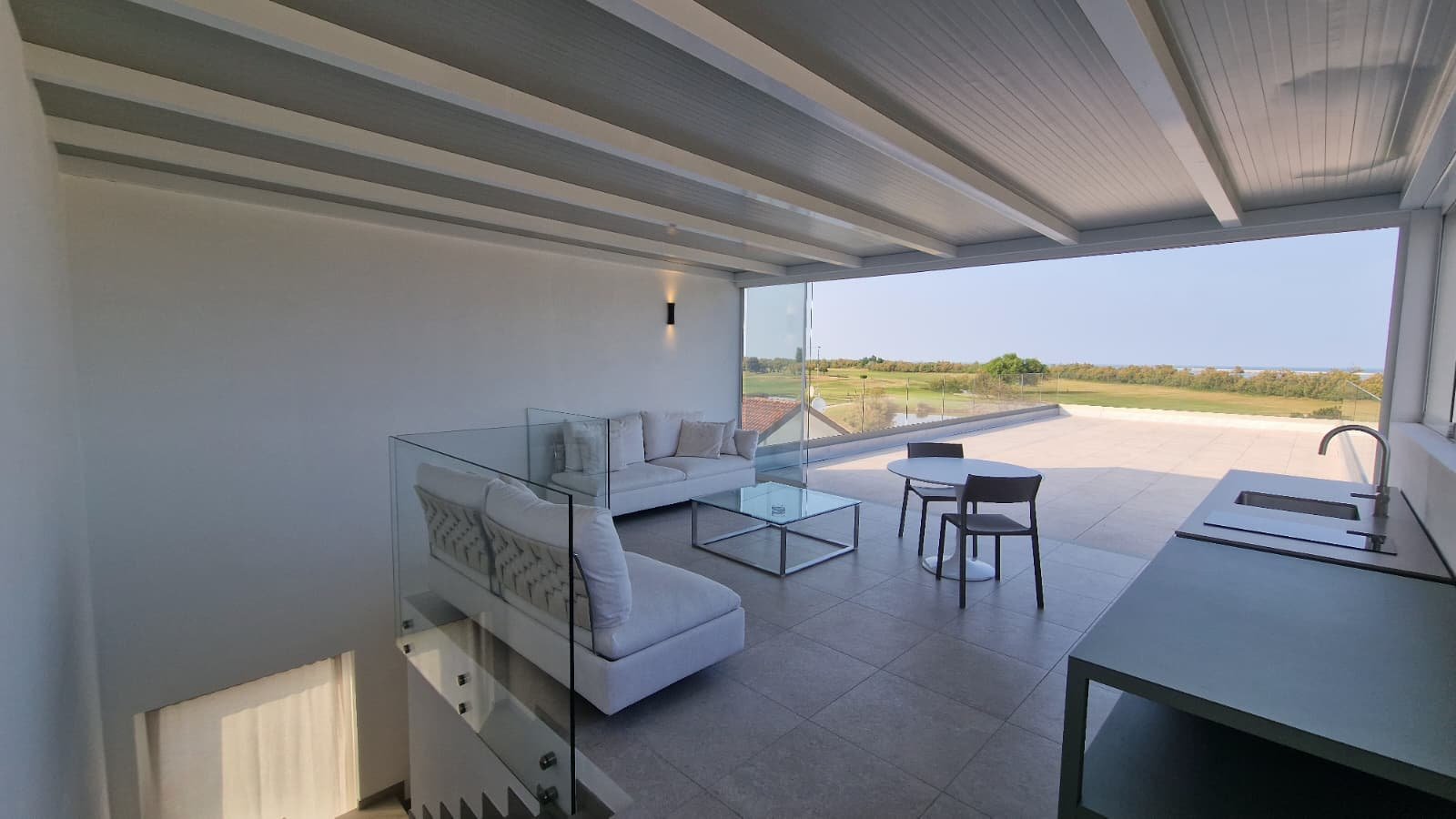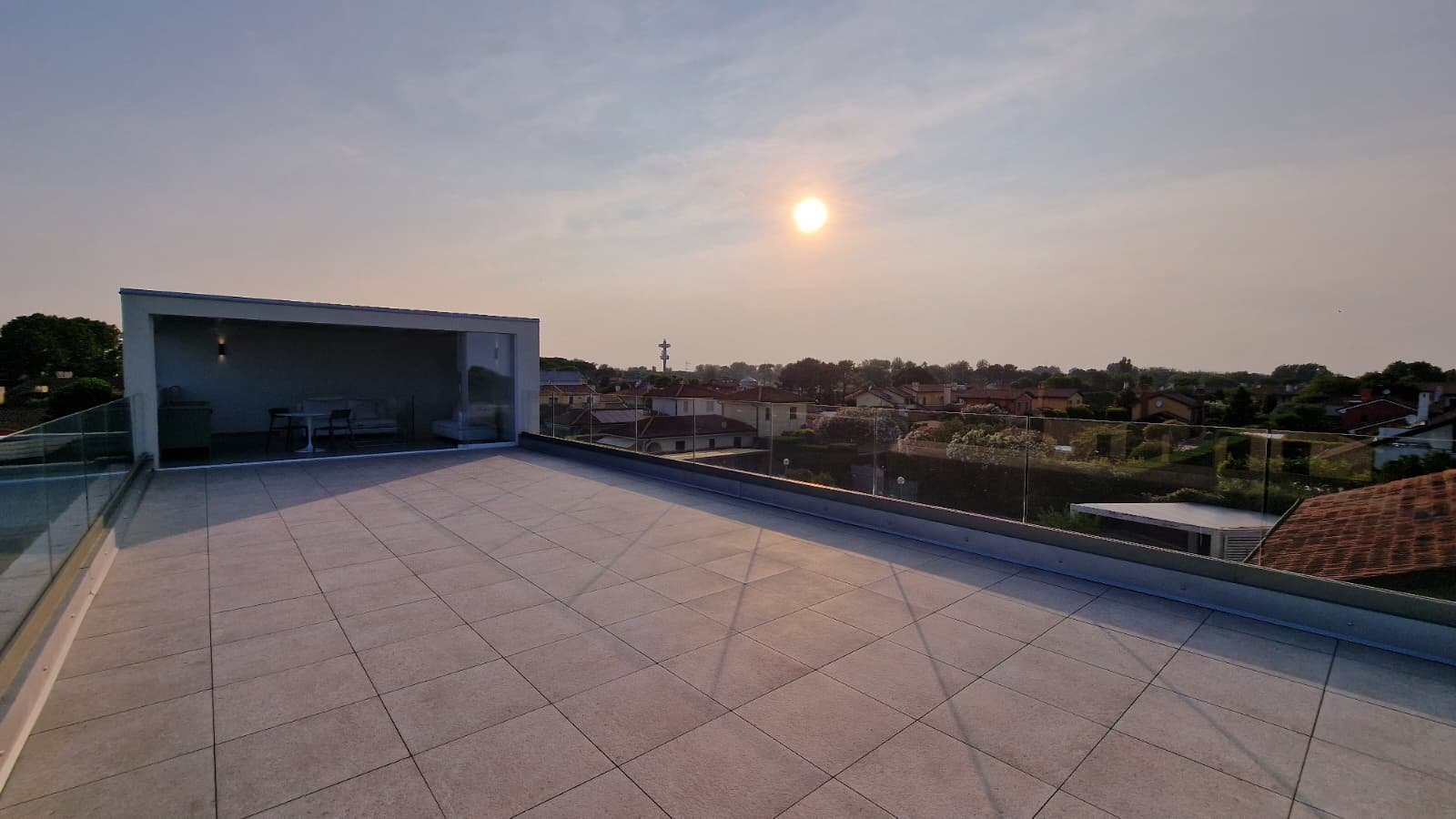 - Spektakuläre Dachterrasse mit Glasgeländern und 70 m² Außenfläche, ideal für unvergessliche Momente bei Sonnenuntergang