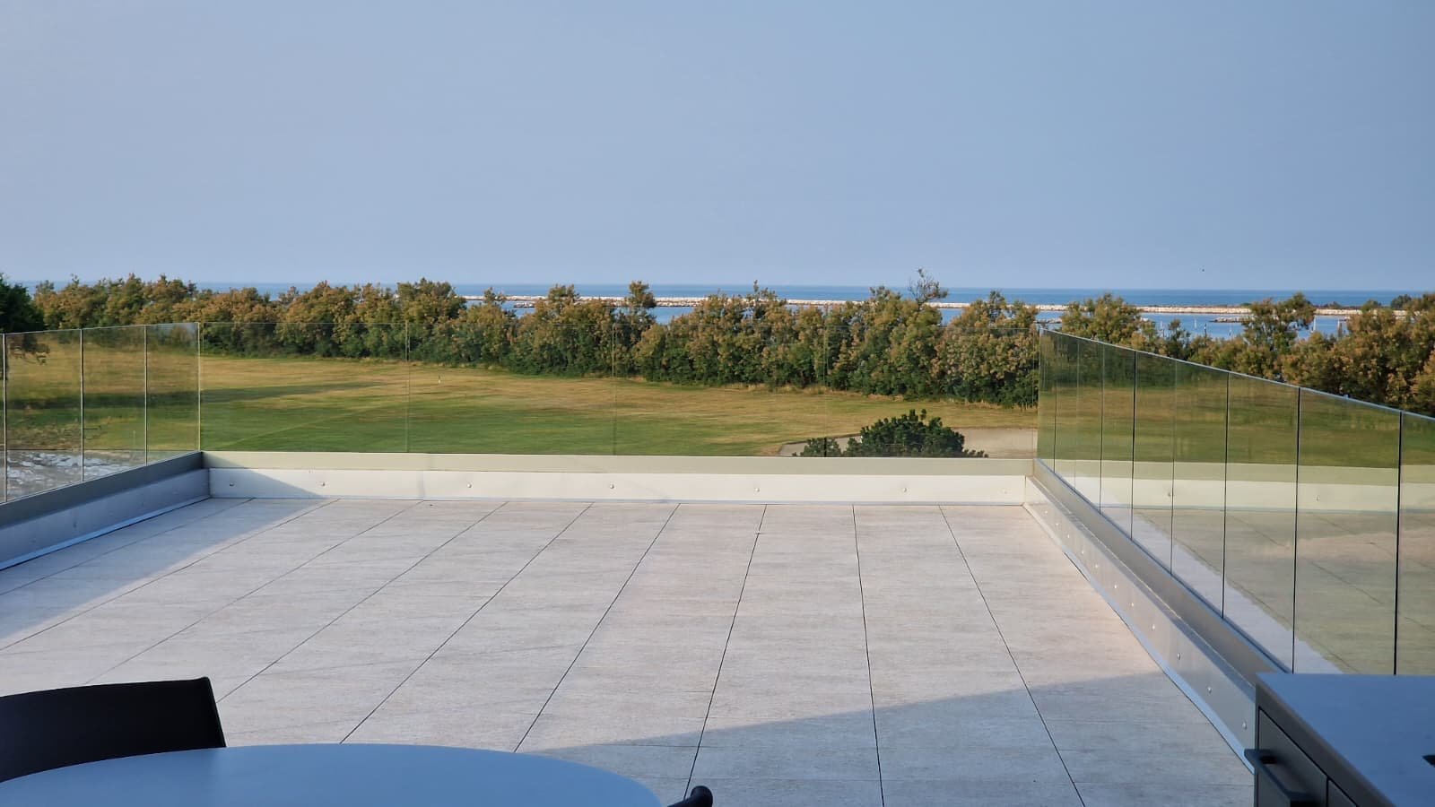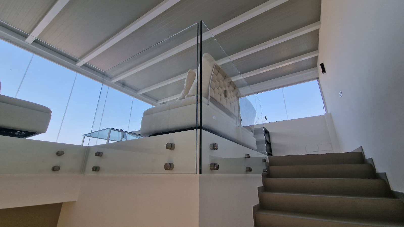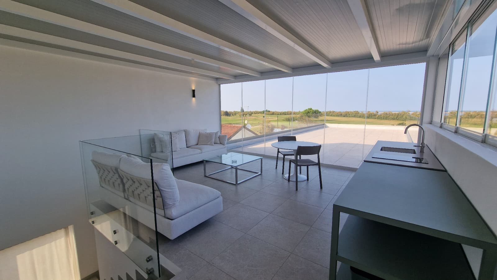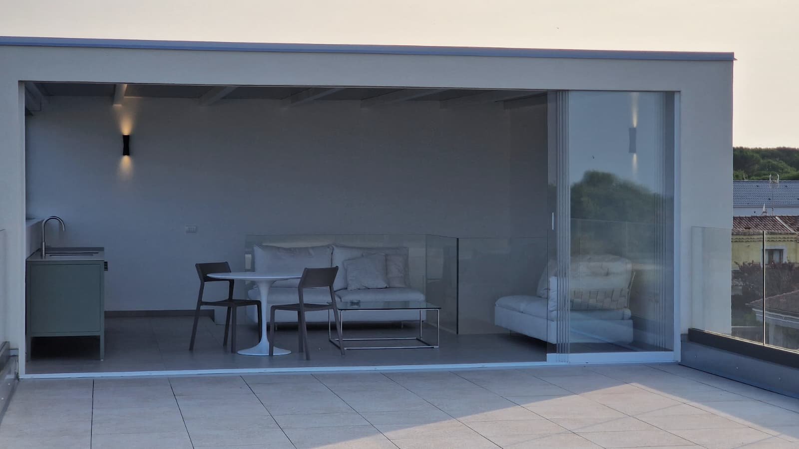 - Spektakuläre Dachterrasse mit Glasgeländern und 70 m² Außenfläche, ideal für unvergessliche Momente bei Sonnenuntergang