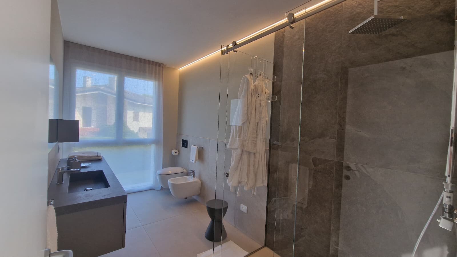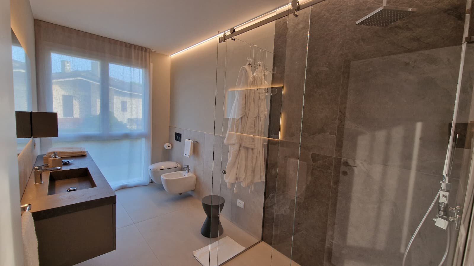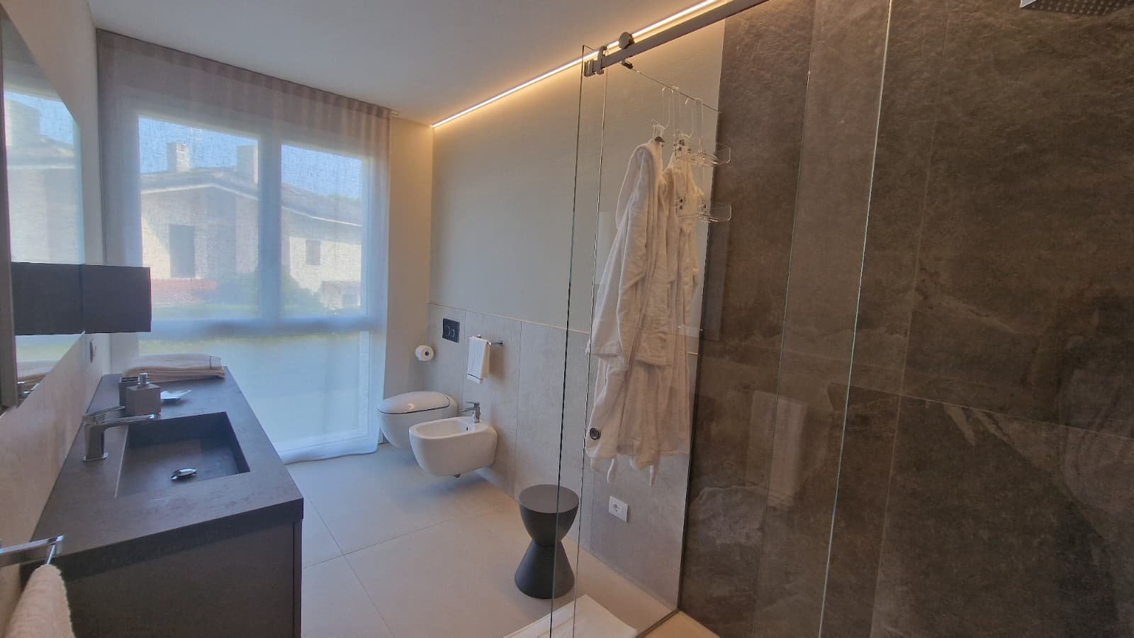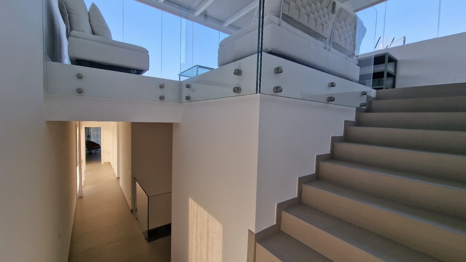 - Spektakuläre Dachterrasse mit Glasgeländern und 70 m² Außenfläche, ideal für unvergessliche Momente bei Sonnenuntergang