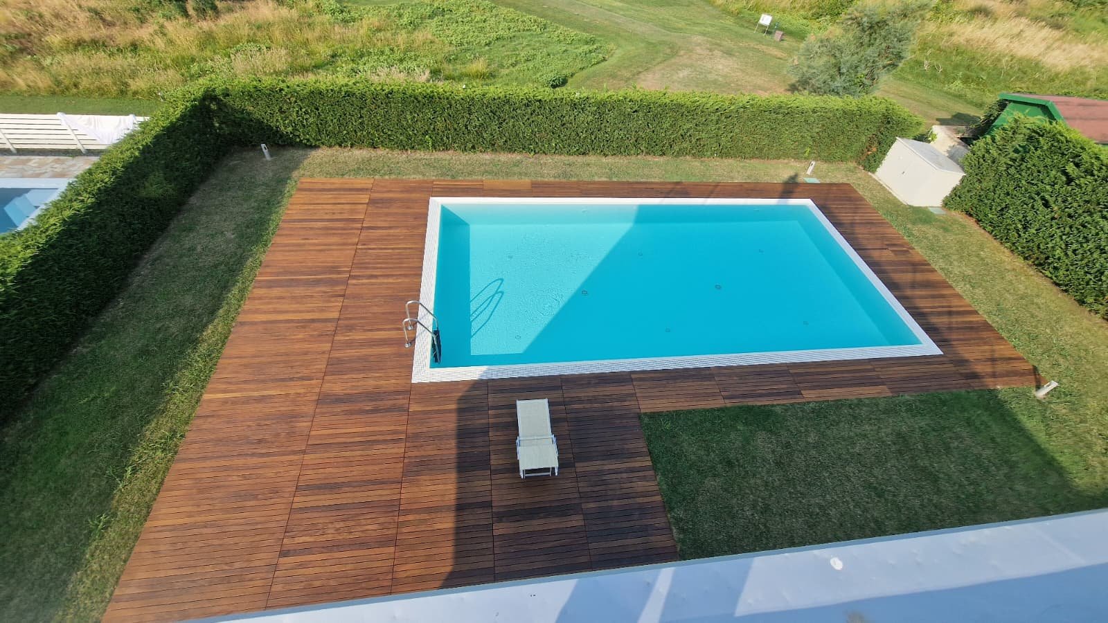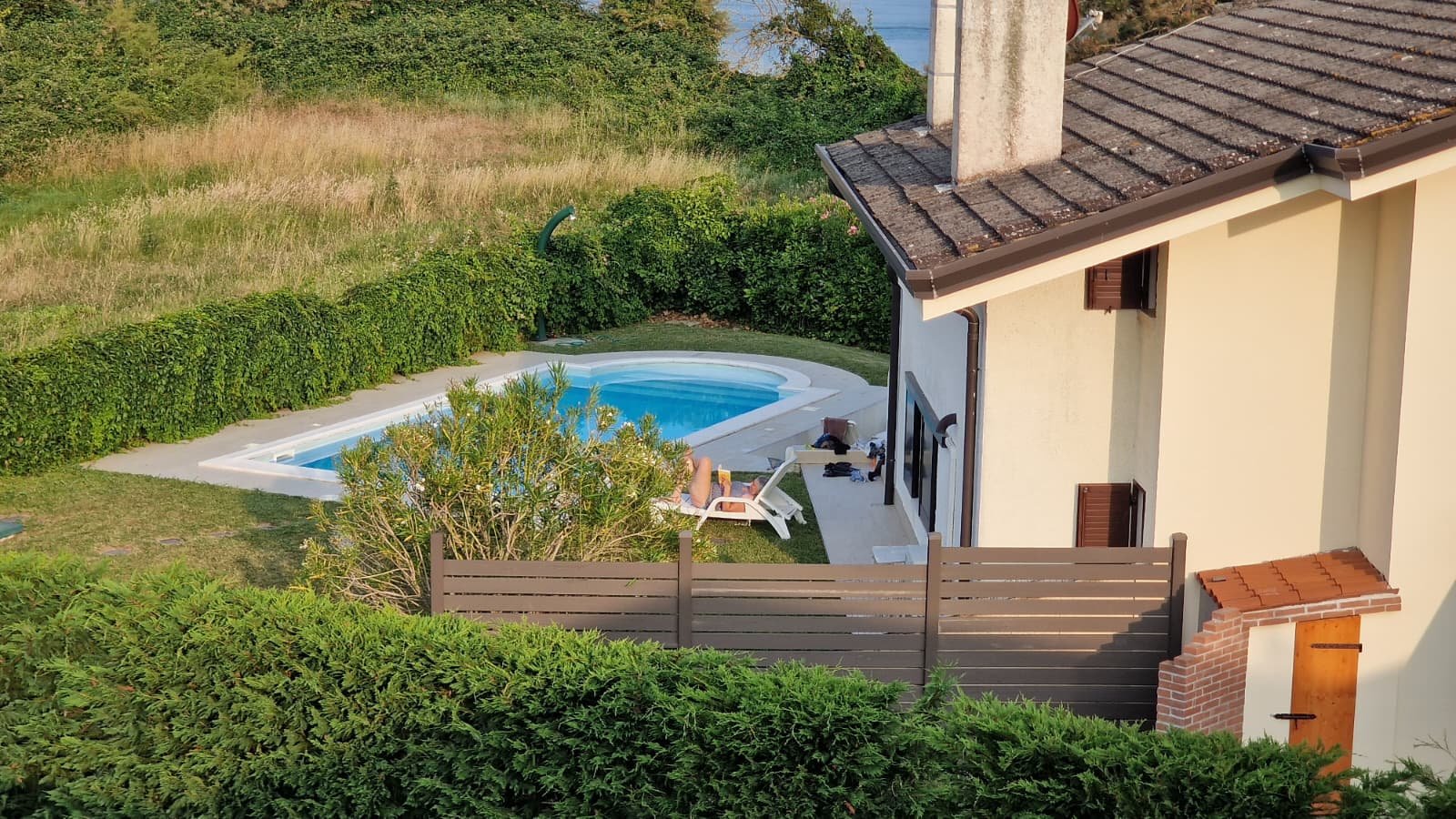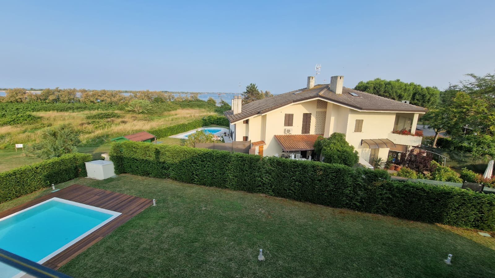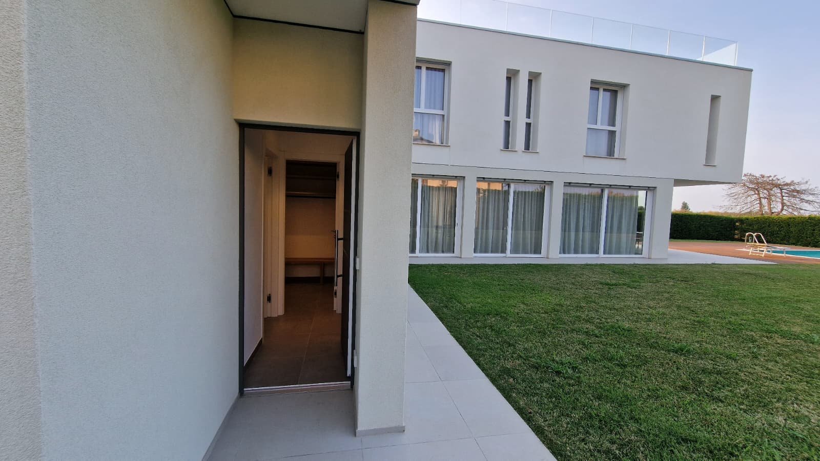 - Hochwertige Materialien, Teakholz-Solarium am Pool, modernste Technik und durchdachte Details wie eine überdachte Terrasse, Gästehaus und separates Pool-Bad