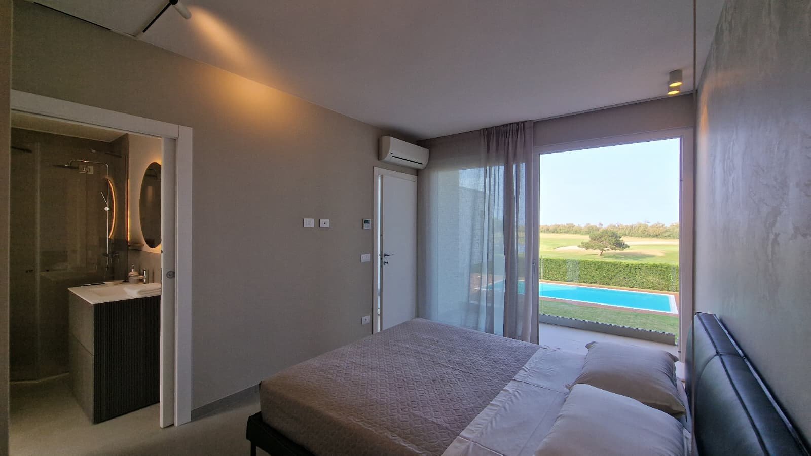 Diese moderne Einzelvilla – vereint höchste Bauqualität, zeitloses Design und eine Lage, die ihresgleichen sucht. Direkt am Golfplatz gelegen, eröffnet sich von hier aus ein bezaubernder Blick bis hin zum offenen Meer – ein Panorama, das verzaubert und jeden Tag neu begeistert.