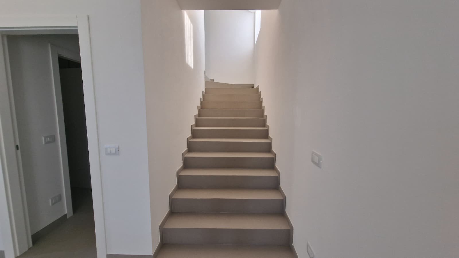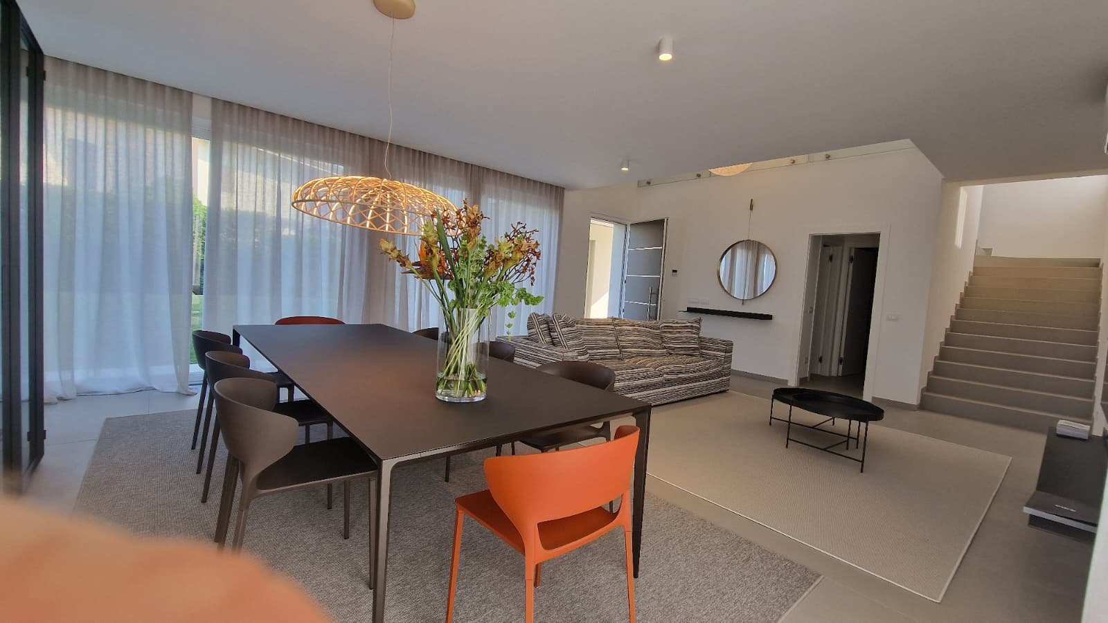 - Großzügiges Wohnzimmer mit Zugang zur Terrasse, elegant verbunden durch eine breite Treppe bis ins lichtdurchflutete Dachgeschoss